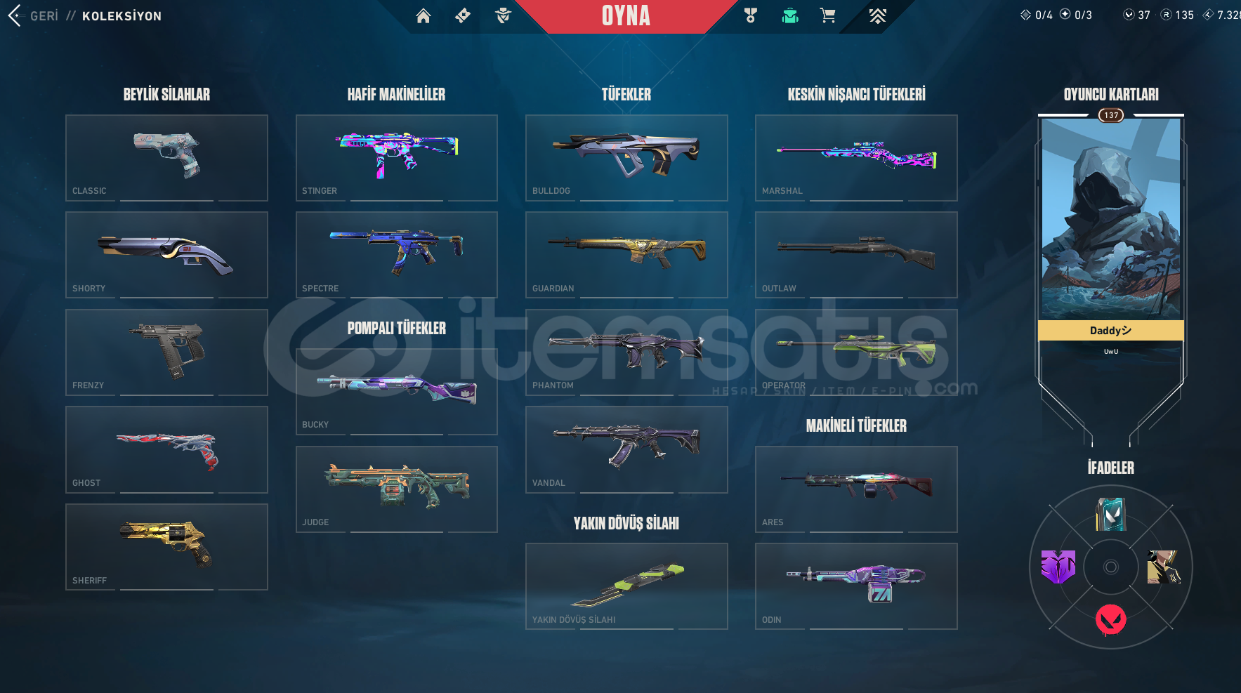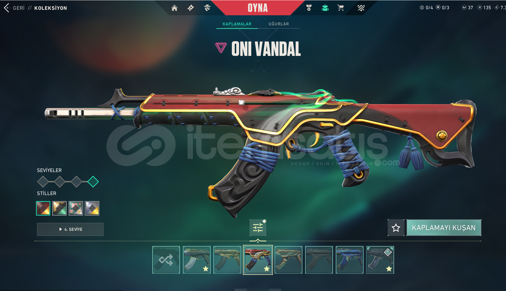 NOT: EU İstanbul sunucusuna girer.RANK: PLAT 2 LEVEL: 137ENVANTER DEĞERİ: 40,050 VPTilde KnifeSpline DaggerCelestial FanObsidianaPrime//2.0 KarambitRGX 11z Pro OperatorIon KarambitReaver KnifeRGX 11z Pro BladeIridian Thorn BladeXenohunter KnifeReaver VandalPrime VandalReaver PhantomGaia's Vengeance GhostOni VandalTOPLAM VALORANTTA:57 skin🧨 Ürün AçıklamasıErişim ve E-Posta BilgileriSatın alma işlemi tamamlandıktan sonra taraf&#...