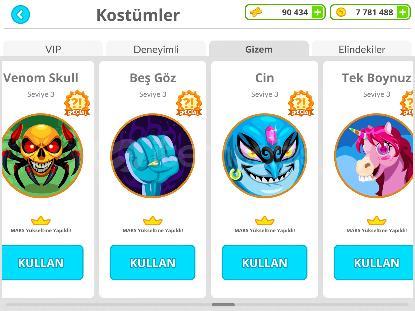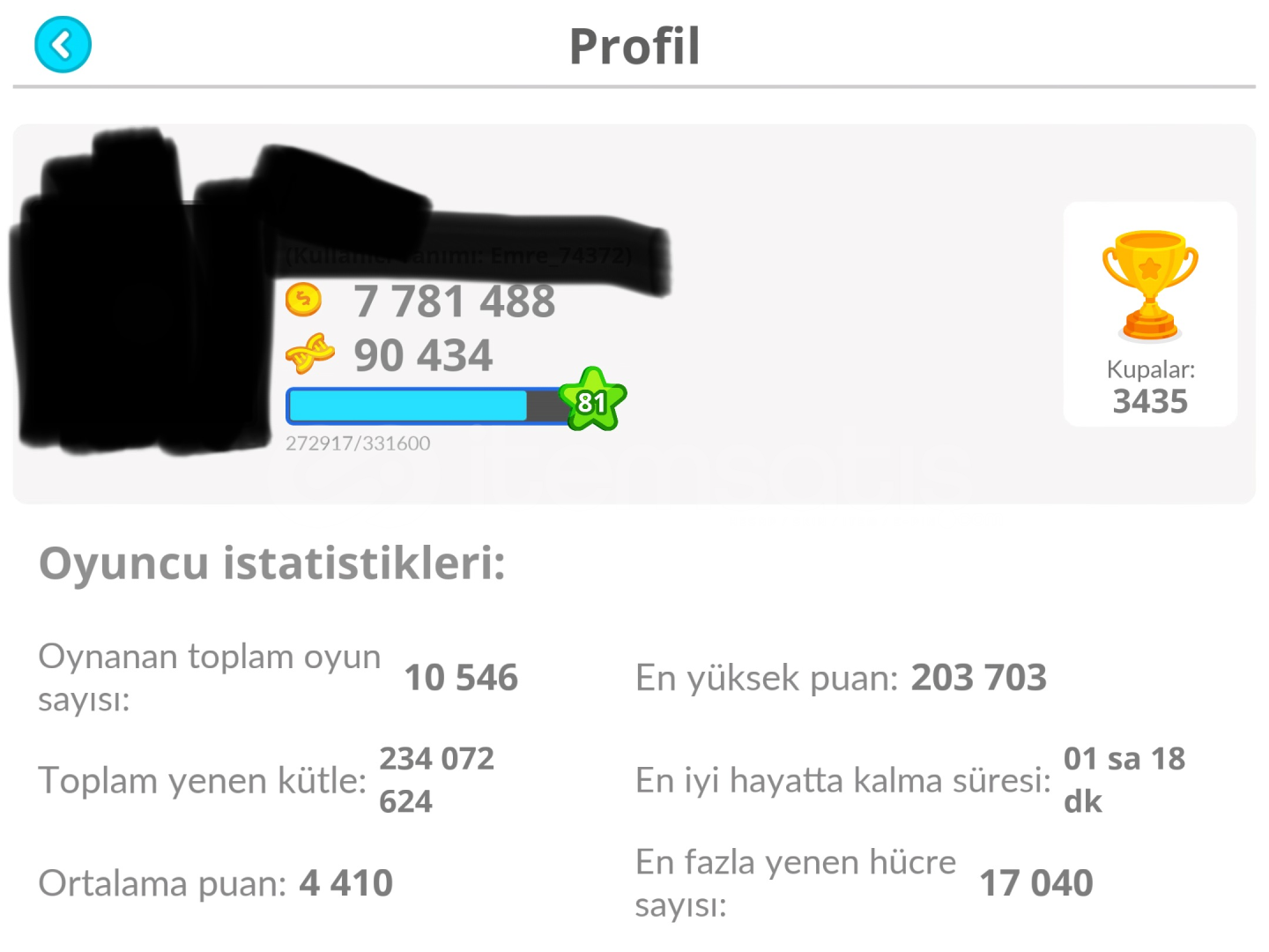 Hesap 81 leveldir, profil istatistikleri oldukça iyidir Hesapta 90.000 DNA ve 7.7 milyon coin bulunmaktadır. Ayrıca hesaba toplamda 4 milyon coin harcanmıştır. Oyundaki tüm coin ile alınabilen skinler mevcuttur. Bunlara ek olarak 3 adet ücretli (parayla alınan) skin vardır. 12 level skin dışındaki tüm level skinler tamamen maxlanmıştır 10 dolar değerinde bok emojiside vardırDeğerinin alt...