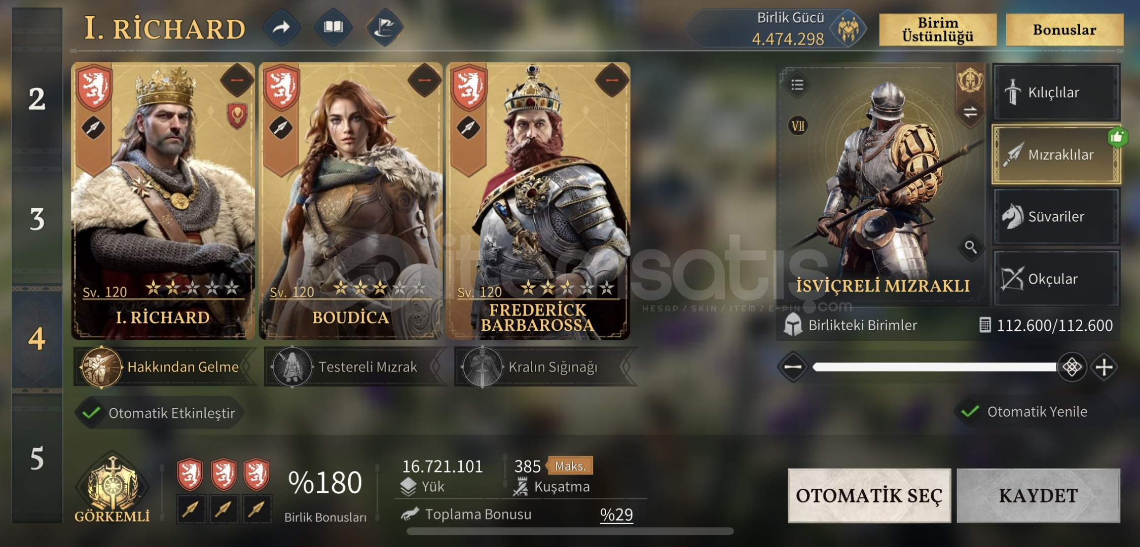 En kudretli vali ye katılmaya hazır kaynakları mevcuttur. VIP10 un son damlalarında 55 Milyon gücündeki ve stratejik olarak emek ile kasılmış bir hesaptır. Oyundan anlayan ne kadar yatırdığımı zaten anlayacaktır. Sadece mail bağlıdır ve o şekilde güvenli şekilde verilecektir. Lütfen sadece gerçek alıcılar bu oyunun piyasasını bilen arkadaşlar benimle özelden detaylar için ve teklif için sesli görüşebilir.