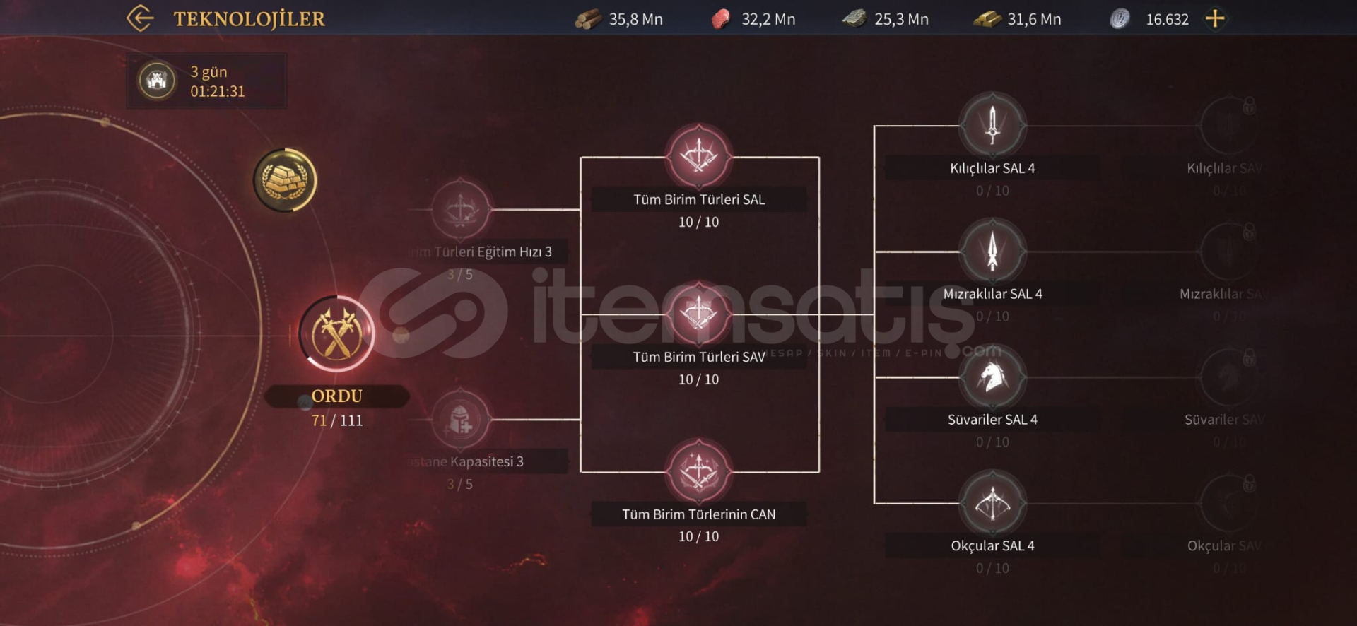 Zırh malzemeleri 3 birliği 80 seviyeye tamamlayacak ve 4. birliğe de ekleme yapacak kadar vardır.
