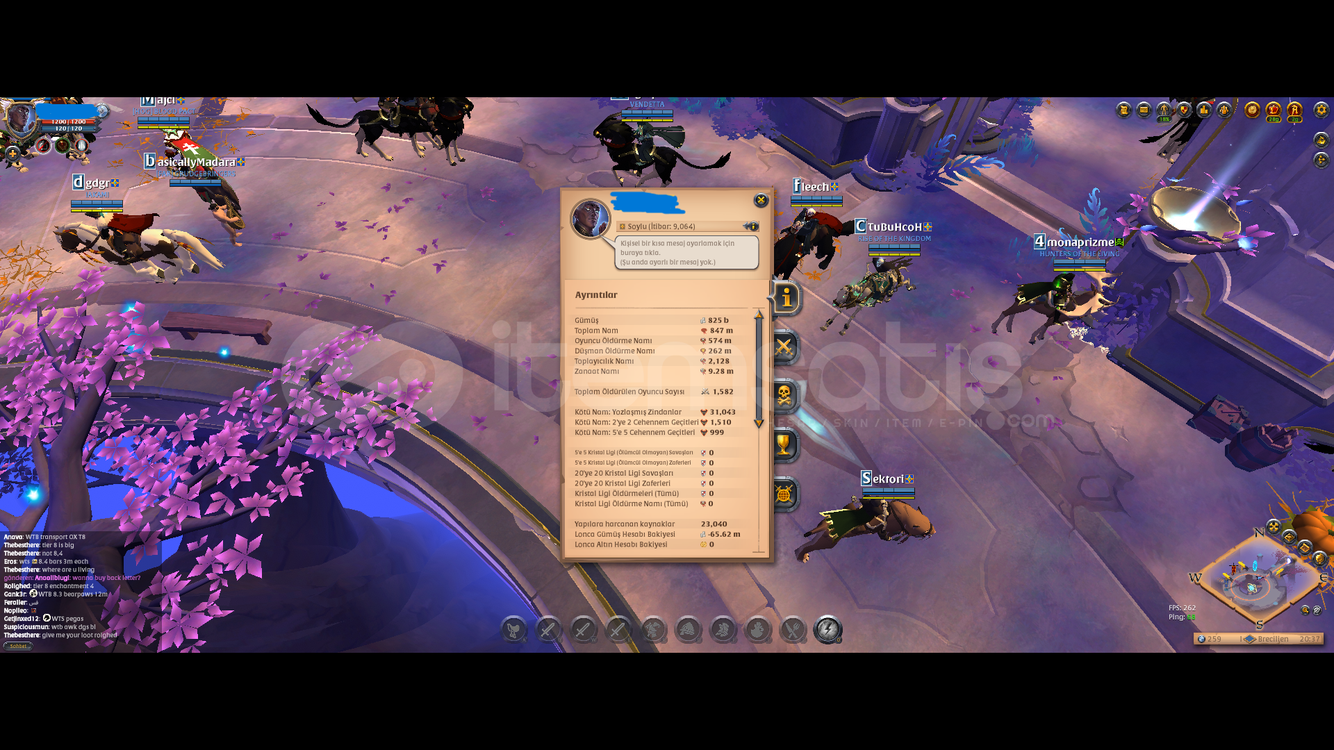 Hesapta hiçbir şekilde rmt veya illegal bir şey yapılmadı 100 Dolar değerinde skin paketi mevcut pegasus atı ile birlikte sadece bu 4k türk lirası yapıyor850M Fame28 Gün PremiumWeeping craft specDagger full specLeather hood full specLeather armor full specCowl full specCloth shoes full specOff hand kalkan ve yan eller full specYan speclerinde ise oynanabilir seviyede hammer ve diğer specler bulunuyor