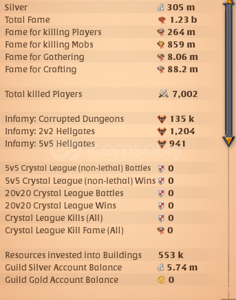 • Toplam Fame: 1.14 Milyar (PvE + PvP + Craft)