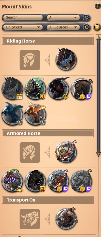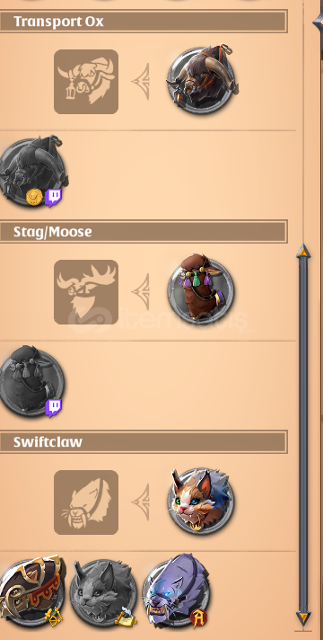 • Diğerleri: Alpaca (Stag), Miststalker White (Swiftclaw).