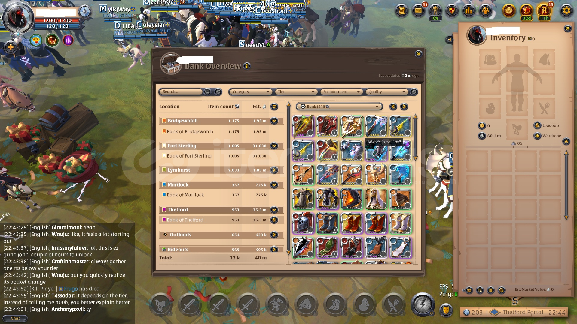 PLATE Plate Bot (713)Plate Armor (666)Plate Helmet (822)LeatherLeather Bot (672)Leather Armor (909)Leather Helmet (917)ClothCloth Bot (908)Cloth Armor (915)Cloth Helmet (915)Sword (790)Gloves (774)Dagger (800)Spear (800)Shapeshifter(730 /lighcaller 120 spec)Bow (454)hammer(350)Cursed (170)Frost (210)Fire (176)Axe(200)Gatherler T8 (ÇOĞU SPECLİDİR - T7 QUARRİER BULUNMAKTA GETİRİSİ AZ OLDUĞU İÇİN T8 ATILMADI)Tracking T5 - CRAFT Ye...