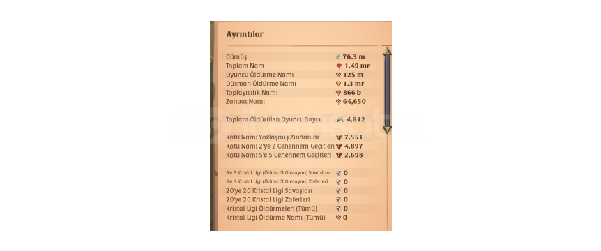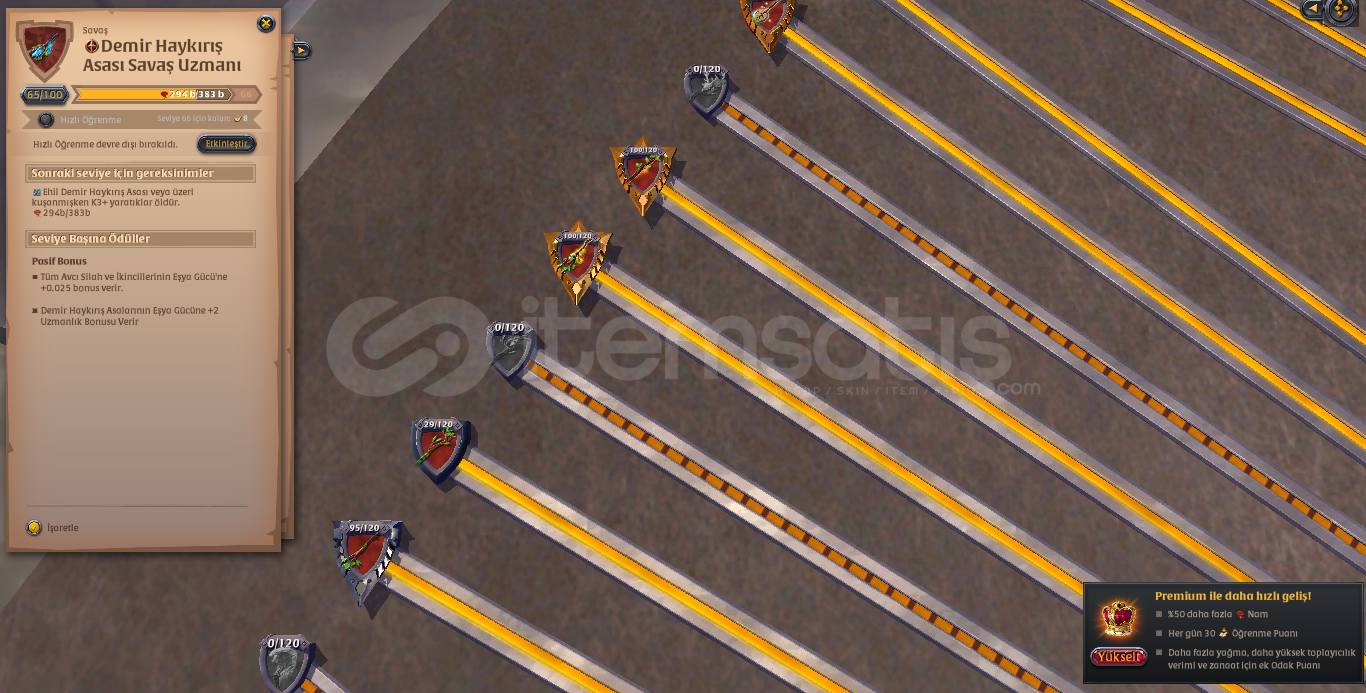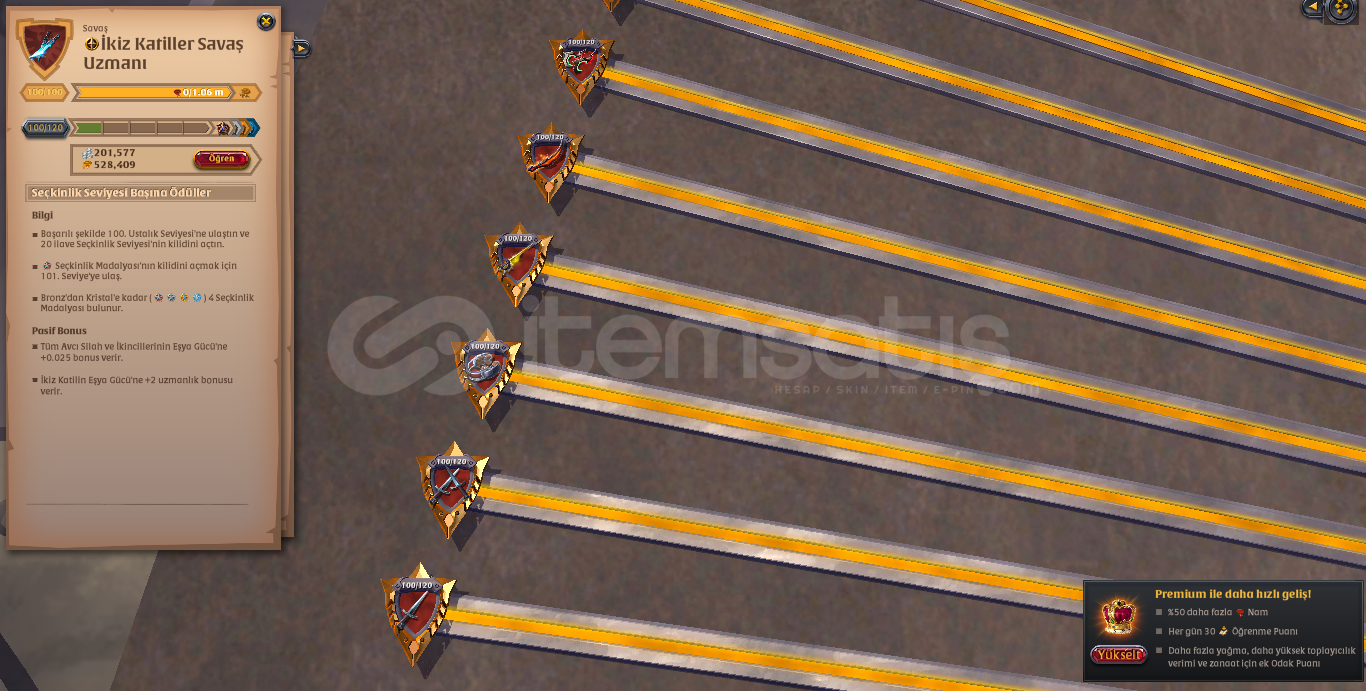 hesap tamamen el emeği ile kasılmıştır herhangi bir boost silver satış çalıntı çırpıntı bir mevzusu yoktur iç itemlerin hepsi 100 spec off handların bir çoğu 120 spec harici oynadığım silahlar ya 700 yada 800 spec onun haricinde hesapta her şeyi oynayabilirsiniz oynamak istediğiniz sınıf full değil ise içerisinide istediğiniz sınıfı full spec yapacak kadar combat fame vardır içerisinide kendi ekonomisini sürdürecek kadar para da var parayı da almak isterseniz iletişime geçersiniz eğrisini doğrusunu konuşuruz her etkinliğe uyacak bir hesap kendi elim ile her etkinliğe katılarak geliştirdiğim bir hesap maili ile sorunsuz bir şekilde devrederim detay için ulaşabilirsiniz ( görsellere sığmayan silahlar falanda var )