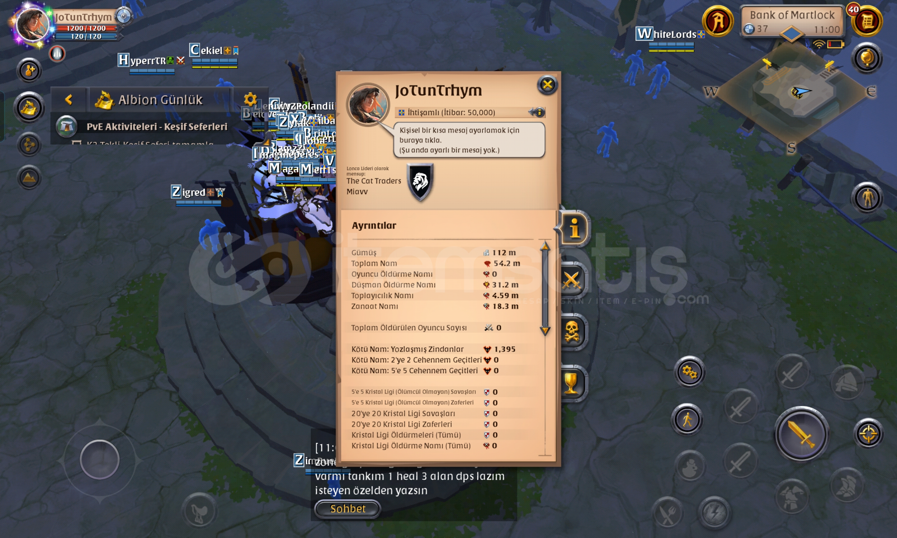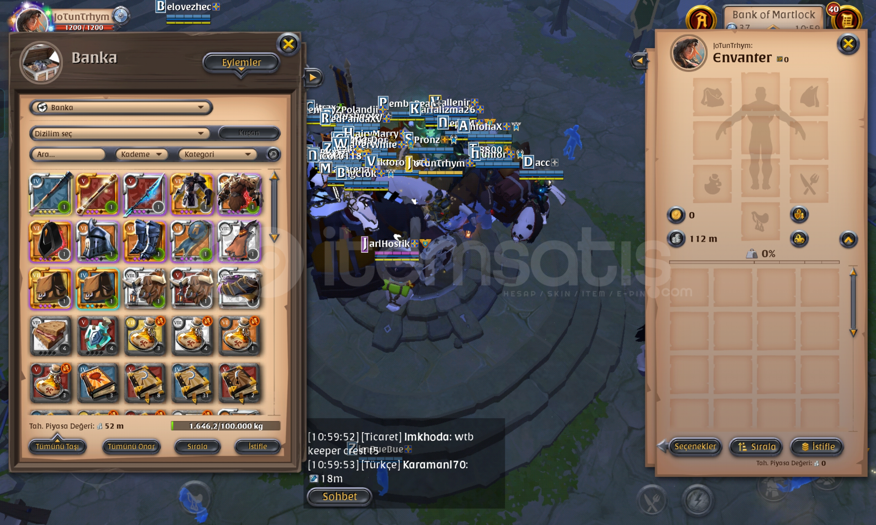 Gather para kasan hesaptır Cevher T8 T5 spec 100 T4 spec 98 t6 27 deri odun T5Taş lif T4 balık t6 Cevher rafine full,muhafız zırh craft 97 112 m nakit, 60 m sandıkta item, 33 m markette satışta var. Kafalıklar kumaş 270 deri 100 plaka 270Zırhlar plaka 320 deri 220 kumaş 200 Ayakkabı kumaş 360 plaka 100 Meşaleler 310 Doğa haykırış asa 100 Sopalar 384 ilk maildir.Hic al sat yapılmadı 1,5aylik h...