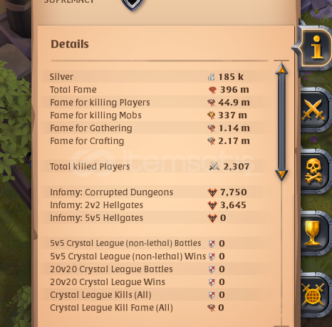 TEMIZ HESAP OYUNU BIRAKTIGIM ICIN SATIYORUM, 0 RMT TERTEMIZDIR.(HESAP 5 AYDIR OYNANMIYOR)GatherT8 (skiner,Fiber) t8 (fhis fulle yakın) (188) craft bag(100) Journeyman Mage:Arcane Staff: Great Arcane (50)Holy Staff: Total (360)Off-hands: Total (178)Journeyman HunterNature Staff: Ironroot (100)Bow: mispicer (90), Total (140)Off-hands: Total (402)Journeyman Warrior:spear: Total(648)exe=bearpaw(102) infernal (100)ClothCowl (272)Robe (427)Sandal (467)LeatherHood (696)Jacket (655)Shoes (9...