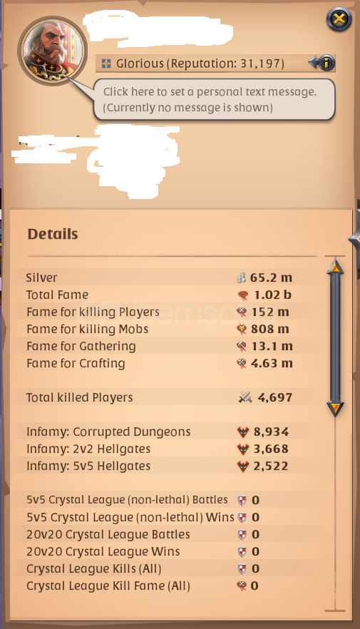 Tüm detaylar resimde hem pvp hem pve yapabileceğiniz.Fort sterling de full adası olan ve 100 spec chicken breeding ve 100 spec butcher ile neredeyse her ay premium parası çıkarabilençTüm gatherleri t8 ve fisherman full spec olmaya çok yakın. sadece t8 haritada balıktan saatte 1.5 - 2m kazanılabilir.65m nakit ve 30m den fazla kasada yaklaşık 30 m de markette satılmayı bekleyen item var.RMT yapılmamı&#...