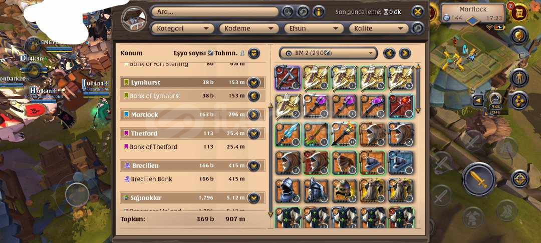 Set silahlar 100 ile 120 arası taş hariç t8 gather1.5b ye yakın silver itemlerle