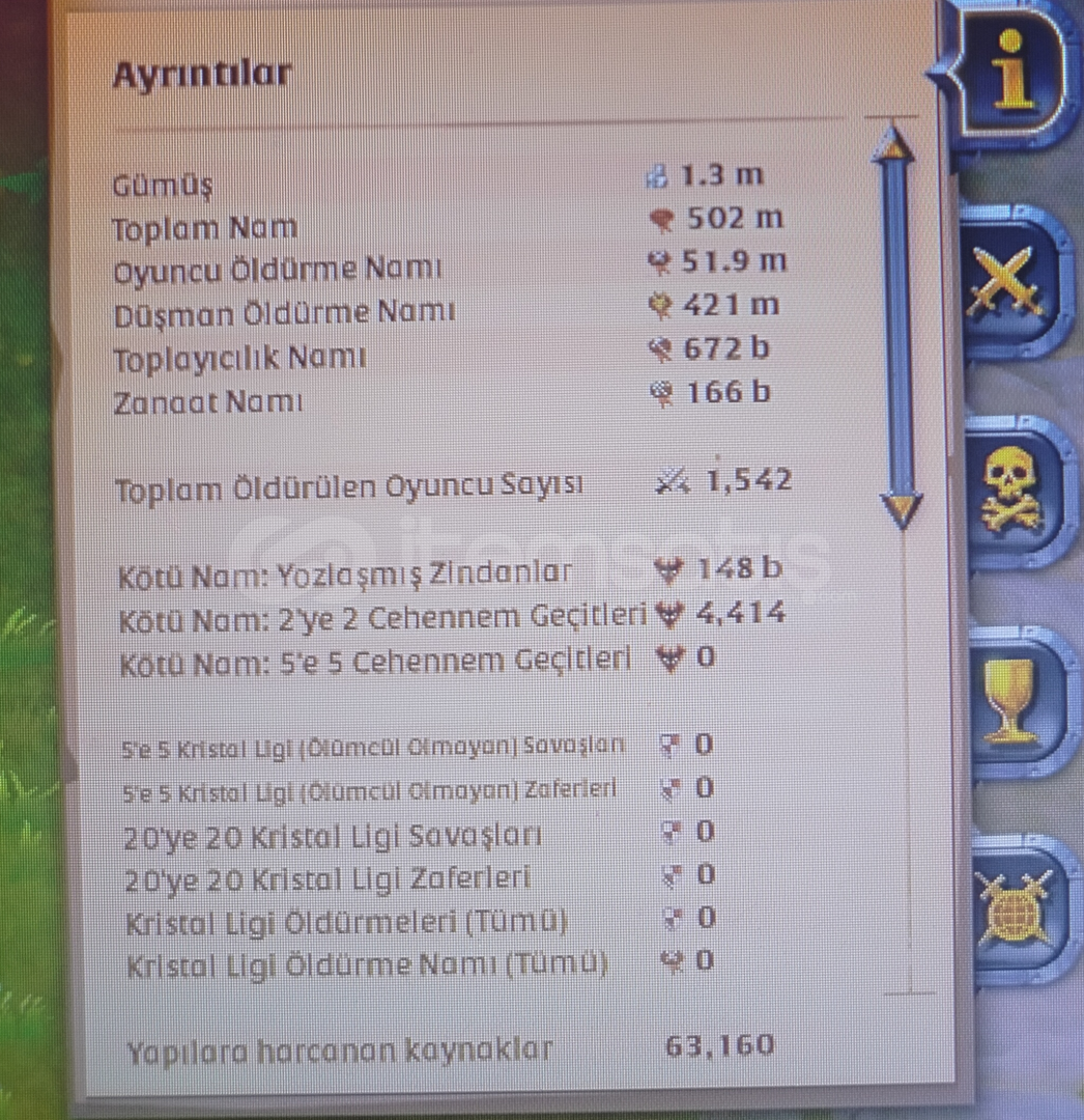 650 spec holy staff700 spec kumaş... çok daha fazlası healer ve gank için kasılı hesap aktif premiuma sahip max seviye adası mevcut t8 madenci açık
