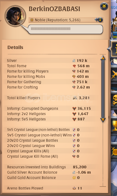 ALBİON ONLİNE UCUZ HESAP İÇİNDEKİLER : HESAPTA OYUNDAN KALDIRILMIŞ PRİEST SKİNİ VARDIR 4K TL DEĞERİNDE HESAPTAKİ SİLAH SPECLERİ AŞŞAĞIDAKİ VE GÖRSELLERDEKİ GİBİDİR: CURSED STAFF = 332 SPEC SPEC WAR GLOVES = 636 SPEC SPEC HAMMER = 198 SPEC MACE = 131 SPEC AXE = 475 SPEC SWORD = 120 SPEC CROSSBOW = 152 SPEC BOW = 100 SPEC DAGGER = 171 SPEC SPEAR = 174 SPEC QUARTERSTAFF = 288 SPEC SHAPESHİFTER = 66 SPEC NATURE STAFF = 244 SPEC PRİEST (HEALER) = 328 SPEC FROST = 94 SPEC FİRE STAFF = 143 SPEC YAN ELLER (KALKANLAR OF HANDSLAR HEPSİ 100 ) SPEC KUMAŞ KAFALIKLAR (CLOTH) 700+ SPEC KUMAŞ ZIRHLAR (CLOTH) 571 SPEC KUMAŞ AYAKKABILAR (CLOTH) 700+ SPEC ---------------------------------- DERİ KAFALIK (LEATHER) 565 SPEC DERİ ZIRH (LEATHER) 850 SPEC DERİ AYAKKABI (LEATHER) 523 ---------------------------------- PLATE KAFALIK 660 SPEC PLATE ZIRHLAR 483 SPEC PLATE AYAKKABI 392 SPEC --------------------------------------- T8 KAZMA (MİNİNG VARDIR) T5 PAMUK (LİF VARDIR) DİĞERLERİ HAMMER HARİCİ T4 FİSHERDE T7 + 60 SPECTİR (BALIK) ------------------------------ 43 SPEC T4 DEMİR MADENİ REFİNİ VARDIR T7 ÇANTA CRAFTI VARDIR + 56 SPECTİR !!!!!!! PAZARLIK PAYIDA VARIDR HESAPTA !!!!!!!!!!! RESİMLER DAR OLDUĞU İÇİN NET ÇIKMADI YUKARIDAKİ YAZIDAN OKUYABİLRSİNİZ HESAPTAKİ STATSLARI