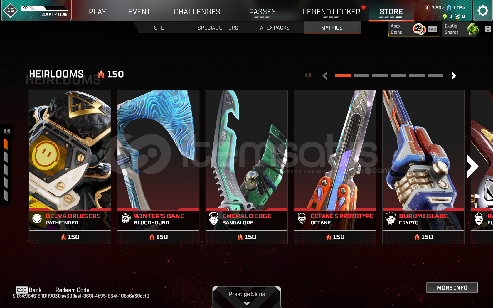 Hesabın içinde 150 Heirloom Shards vardır alan kişi istediğini alabilir.