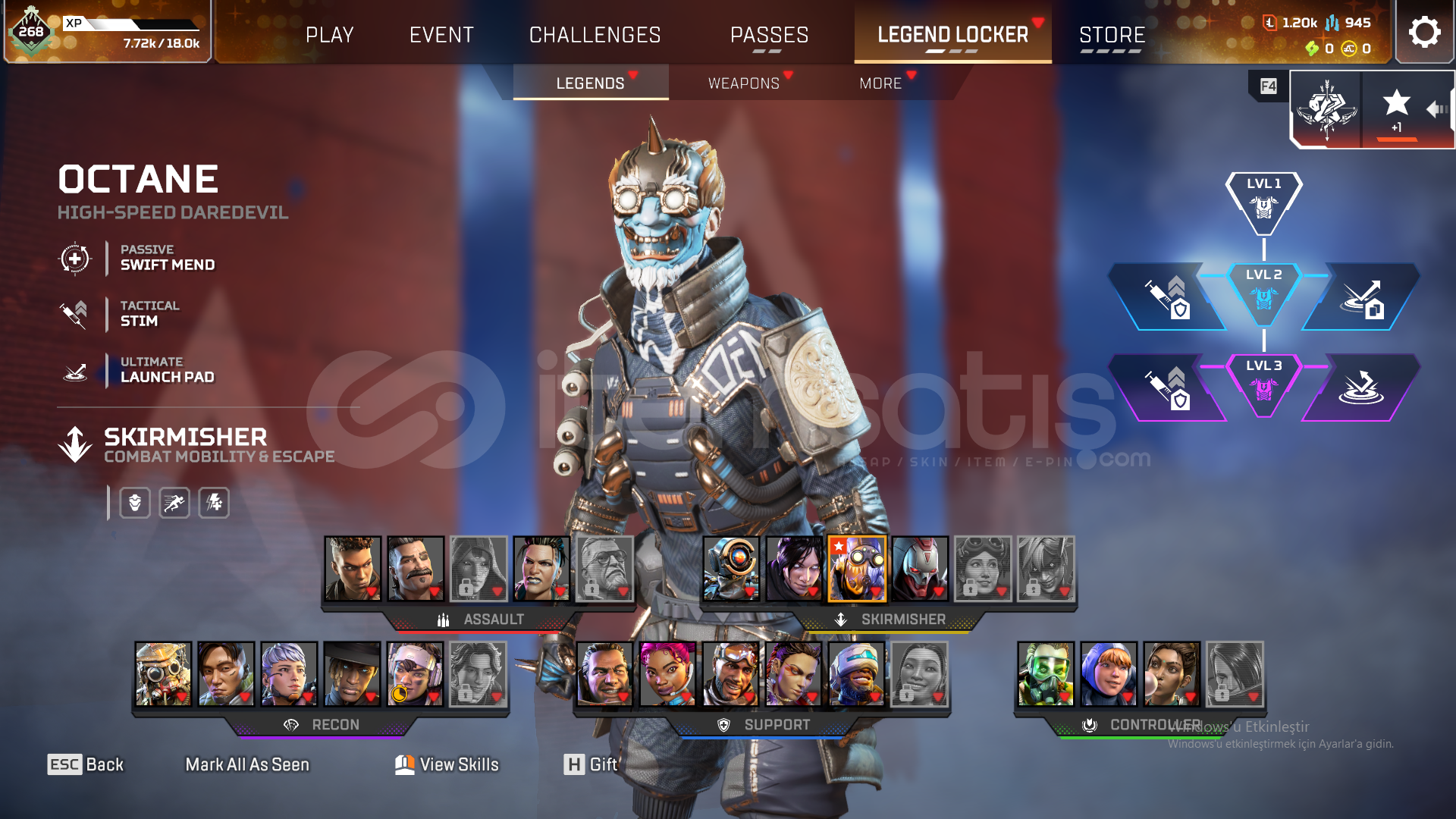 APEX LEGENDS OCTANE HEIRLOOM + mail değişebilirOyunu bıraktığımdan satıyorumhesap 268 leveldir ve içinde birbirinden çeşitli legendarylar bulunmaktadır.İlanı satın aldıktan sonra kısa bir süre içinde teslim ederim.