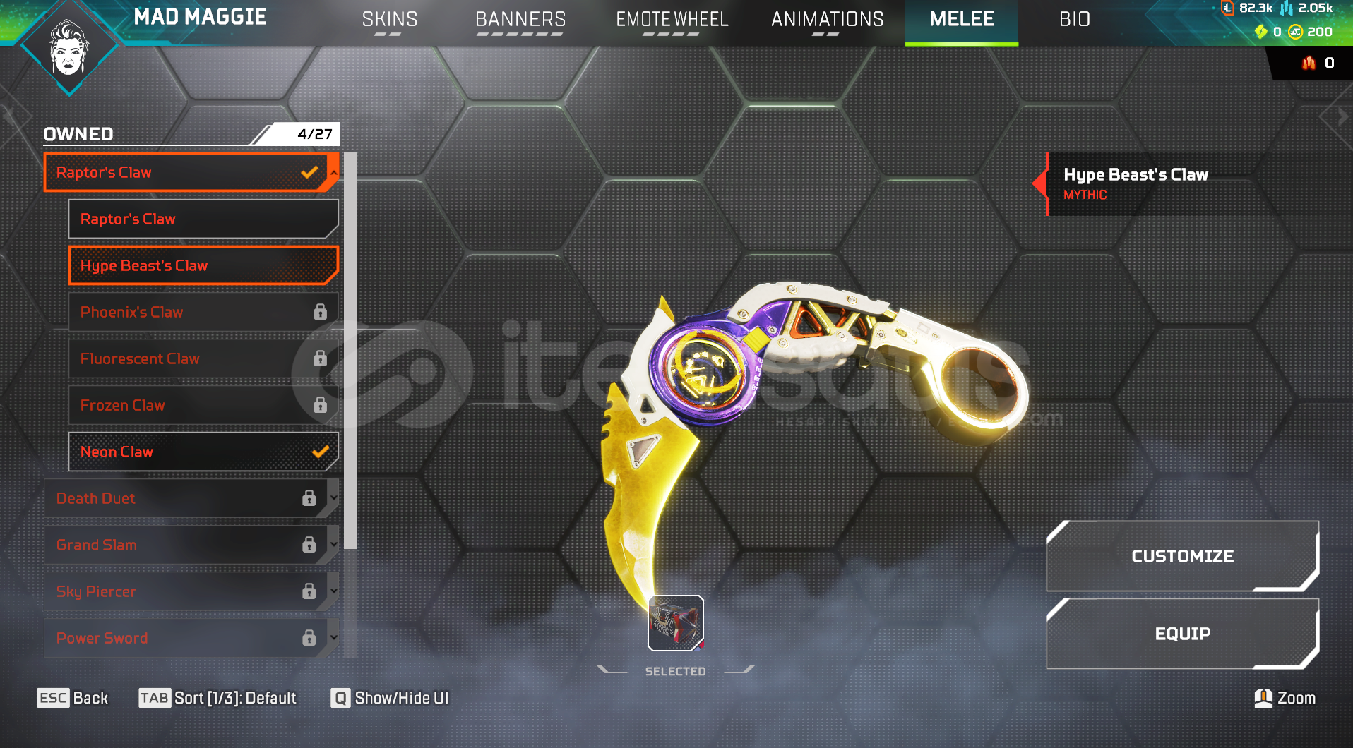 713lvl hesapta raptors claw heirloom 3 adet skiniyle beraber bulunmakta.