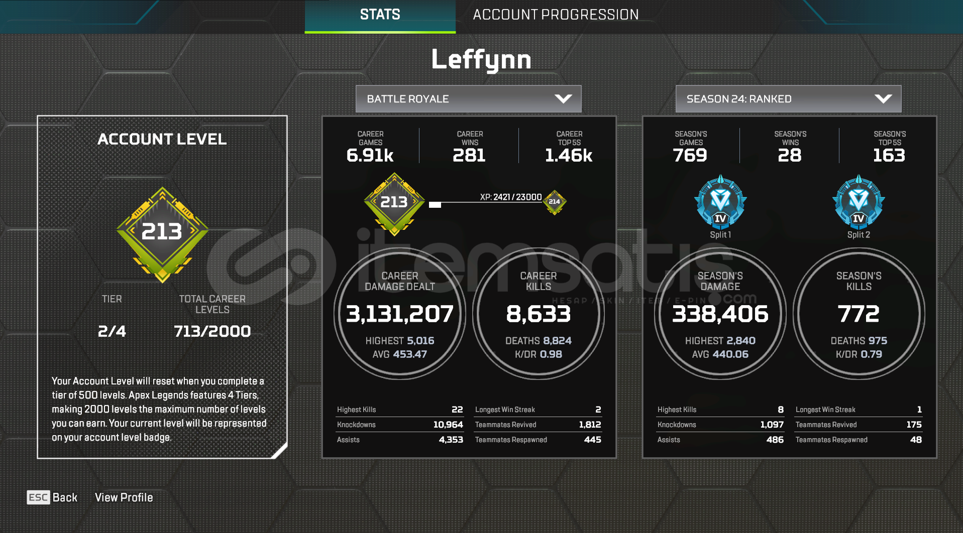 satın aldığınızda İlk mail + ea hesap id şifre hepsini alıcaksınız713lvl hesapta raptors claw heirloom 3 adet skiniyle beraber bulunmakta.255 adet legendary item7000 i med maggie üzerinde 8500+ toplam kill bulunmaktasezon 24 25 diamond badgeherhangi bir sorunuz olursa iletişime geçebilirsiniz.