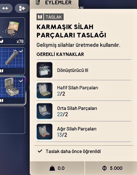 Arc Raiders Karmaşık Silah Parçaları Taslağı