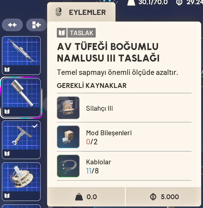 • Eğer tek bir eşya satın aldıysanız, ÖZEL TEÇHİZAT ile girip bir güvenli cep elde ediyoruz. Eşyayı güvenli cebe alıp, ESC menüden TESLİM OL diyoruz.