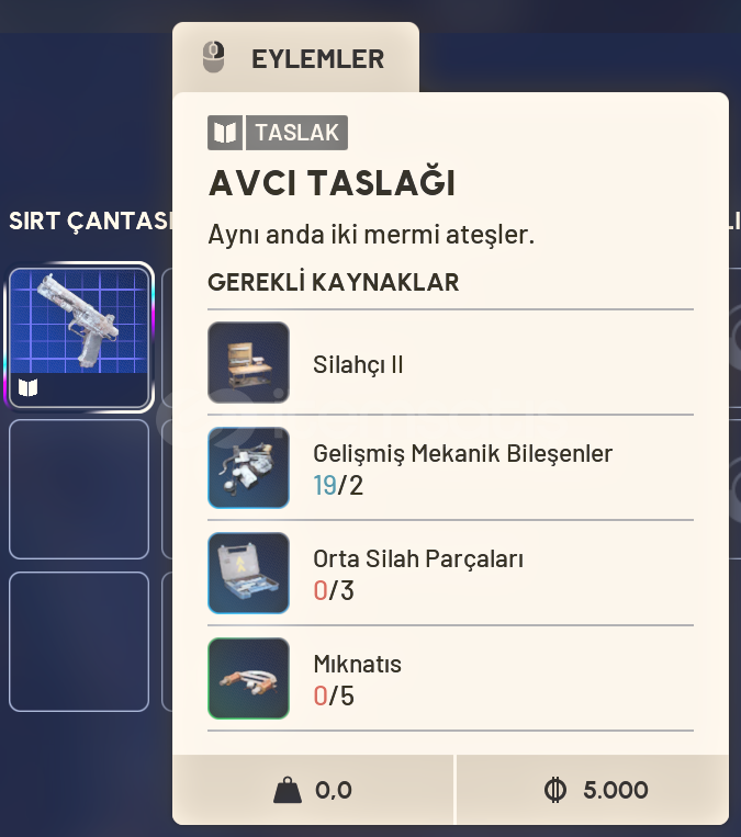 • Eğer tek bir eşya satın aldıysanız, ÖZEL TEÇHİZAT ile girip bir güvenli cep elde ediyoruz. Eşyayı güvenli cebe alıp, ESC menüden TESLİM OL diyoruz.