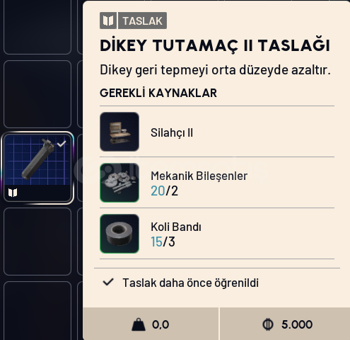 Güvenilir satıcıdan  Arc Raiders Dikey Tutamaç 2 Taslak. Silah dikey geri tepmelerini azaltarak daha kontrollü atış imkânı sağlayan tutamaç mod blueprintidir.✅ %100 orijinal✅ Gerçek stok – stash’te hazır✅ SS mevcut✅ Anında teslimat✅ Güvenli trade💸 Piyasanın en ucuzu⏱ 7/24 online’yim, mesajlara hızlı dönüş y...