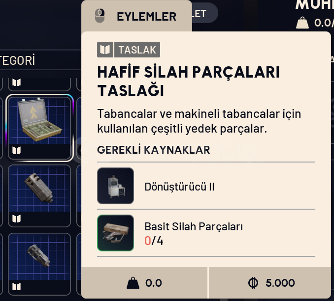 HAFİF SİLAH PARÇALARI (Light Gun Parts)TASLAK BP