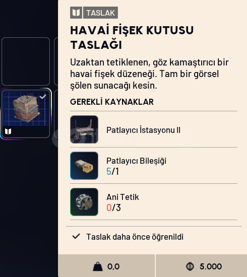 HAVAİ FİŞEK KUTUSU TASLAĞI