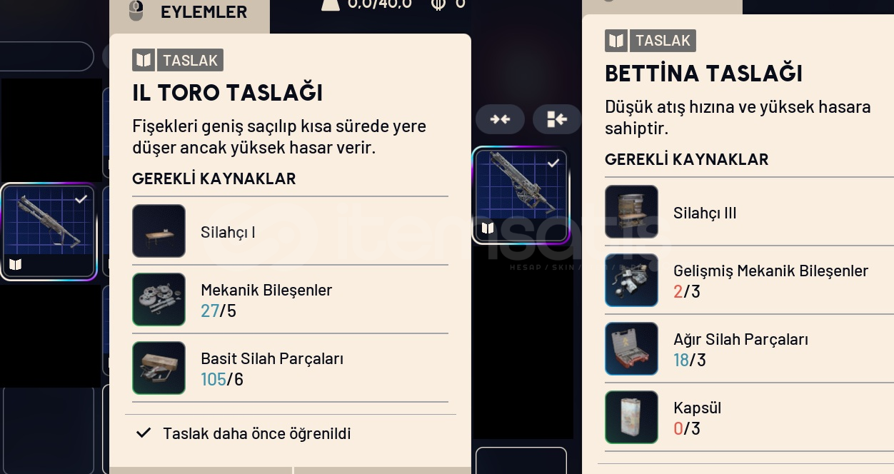 İl toro ve bettina 2 adet blueprint tek fiyat (il toronun piyasasına göre bettina bedavaya geliyor)Satın aldıktan sonra oyun içi idnizi yollamanız yeterliHaftanın 7 günü saat öğlen saat 12yle gece 12 arasında teslimat yapabilirim.