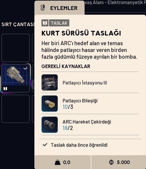 Güvenilir satıcıdan Arc Raiders Kurtsürüsü Wolfpack Taslak Blueprint! ARC robotlara karşı en güçlü utility, büyük ARC'leri (Queen, Bastion vb.) hızlı eriten meta grenade.