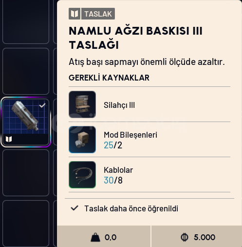 Güvenilir satıcıdan  Arc Raiders Namlu Ağız Baskısı 3 Taslak. Ateş sırasında oluşan geri tepme ve namlu kalkışını azaltmaya yardımcı olan üst seviye namlu mod blueprintidir.✅ %100 orijinal✅ Gerçek stok – stash’te hazır✅ SS mevcut✅ Anında teslimat✅ Güvenli trade💸 Piyasanın en ucuzu⏱ 7/24 online’yim, mes...