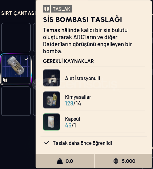Güvenilir satıcıdan  Arc Raiders Sis Bombası Taslak (Blueprint)!