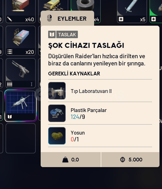 oyundan ekliyoruz sefere başlıyoruz itemi atıyorum güvenli cebe alıyorsun esc teslim ol diyip çıkabilirsin