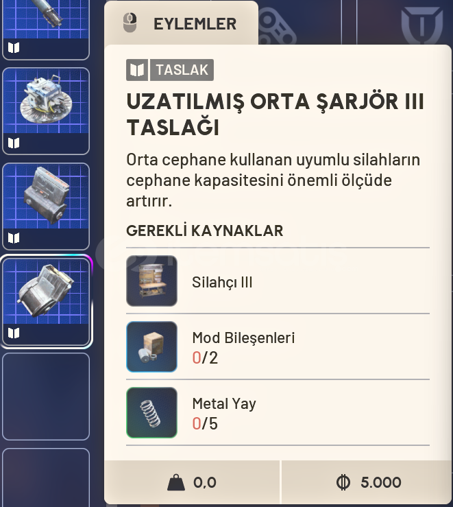 UZATILMIŞ ORTA ŞARJÖR 3 TASLAK - BLUEPRINT