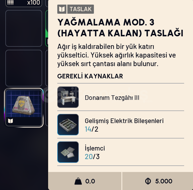 Oyundaki en rağbet gören taslak olan yağma mod3 hayatta kalan taslağı