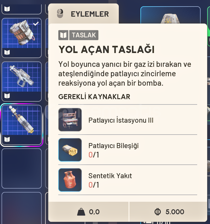 • Eğer tek bir eşya satın aldıysanız, ÖZEL TEÇHİZAT ile girip bir güvenli cep elde ediyoruz. Eşyayı güvenli cebe alıp, ESC menüden TESLİM OL diyoruz.