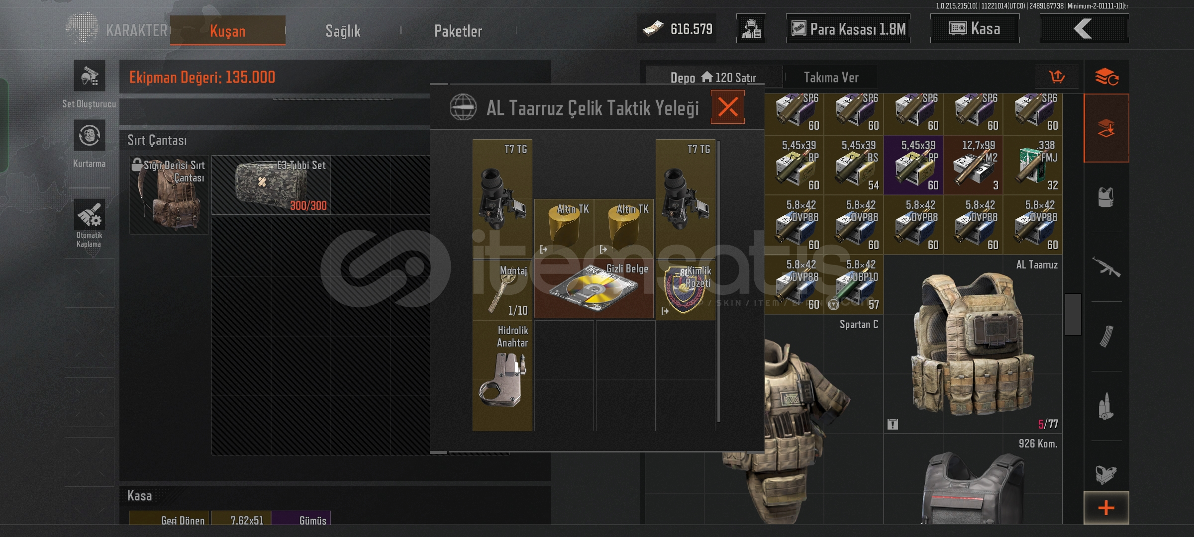 Hesapta gizli belge 600 k nakit 1.5 m kasada para vardır bolca anahtar silah mevcut kullanmadığım için ilana çıkardım