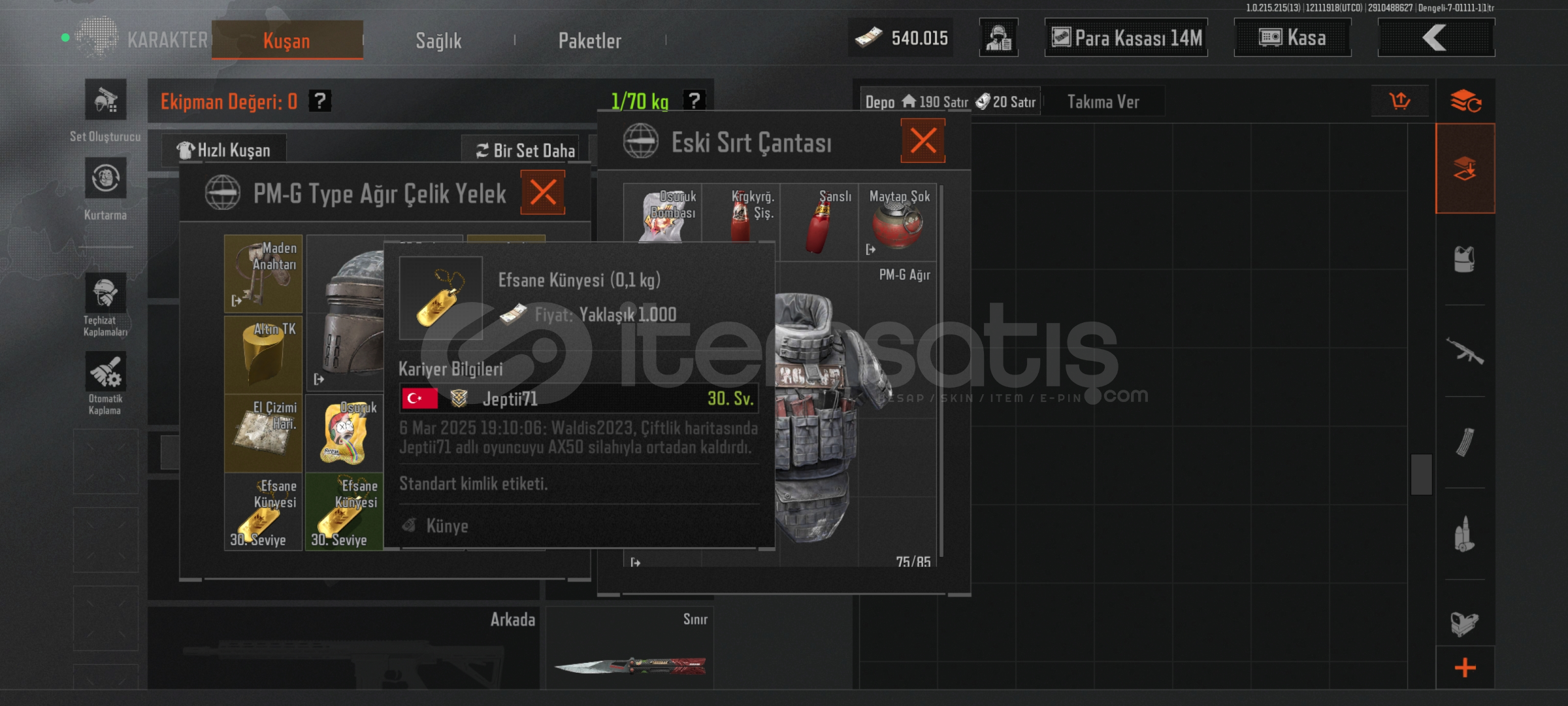 Sezon 4 hesabıdır bıçak olarak kelebek vardır îb4an üzerinden ödeme yapılırsa indirim yaparım