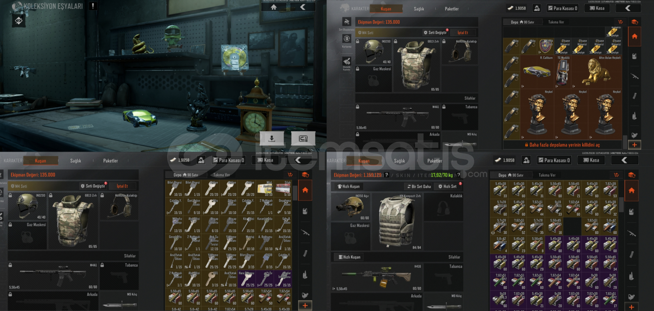 S1 hesabı,30lv,depoda tg modülü,heykeller, aslan,yeni gelen araç, t7 termal , t5 t6 setler h4 ler ve daha birçok silah,her silahın deseni var. Depoda fazlasıyla her çeşit 4 ve 5sv mermi bulunmakta,her haritanın anahtarları fazlasıyla mevcut. segi kısmında gizli belge,R.caliburn,operasyoncu,altın yılan,protez kol ve masa saati bulunmakta 2 heykel sonra sergiye eklenebilir