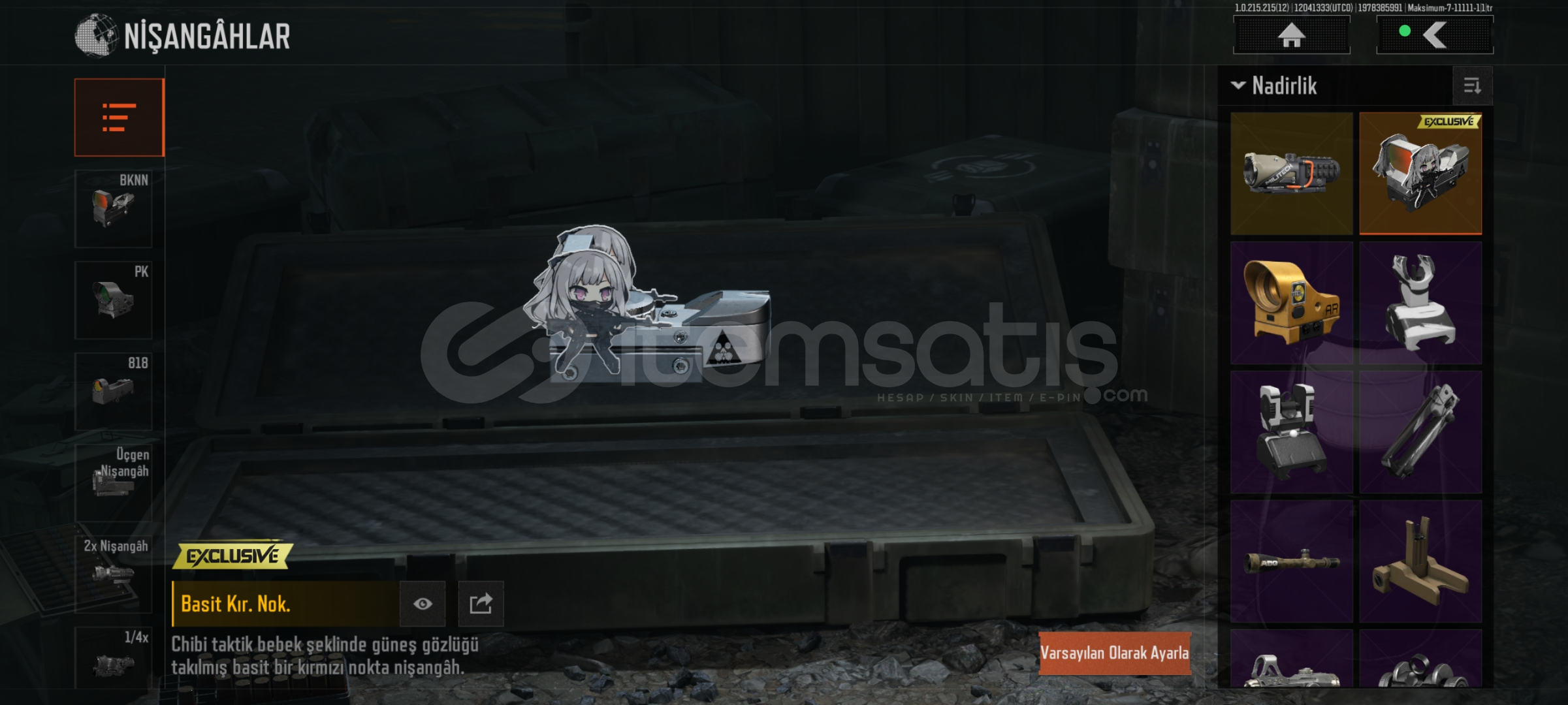 Hesap Özeti:Tamamen özenle hazırlanmış, nadir eşyalar ve yüksek değerli içeriklerle dolu elit bir Arena Breakout hesabı satılıktır. Hem görünüş hem güç olarak üst seviyededir.📌 Hesap İçeriği:8 adet Sarı (Efsanevi) Kaplama11 adet Güzel / Premium Silah Kaplaması3 tane Full Set2 adet sadece ceket (kozmetik)Derece: TikToker Rozeti (Nadir)1 adet Ütopya1 ...