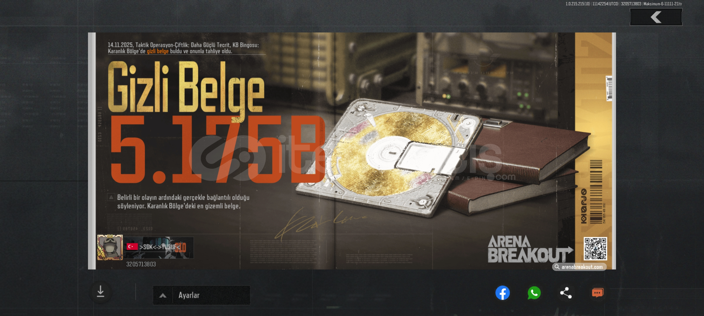 Arena breakout mobile hesabı 100% bensıs 5.lvl liyakat S9 da açıldı şanslı hesap1 gizli belge 1 ütopya 2 tg ...