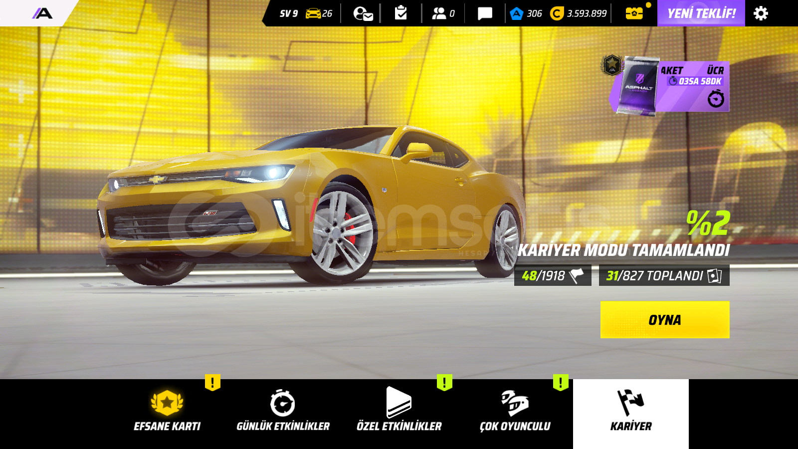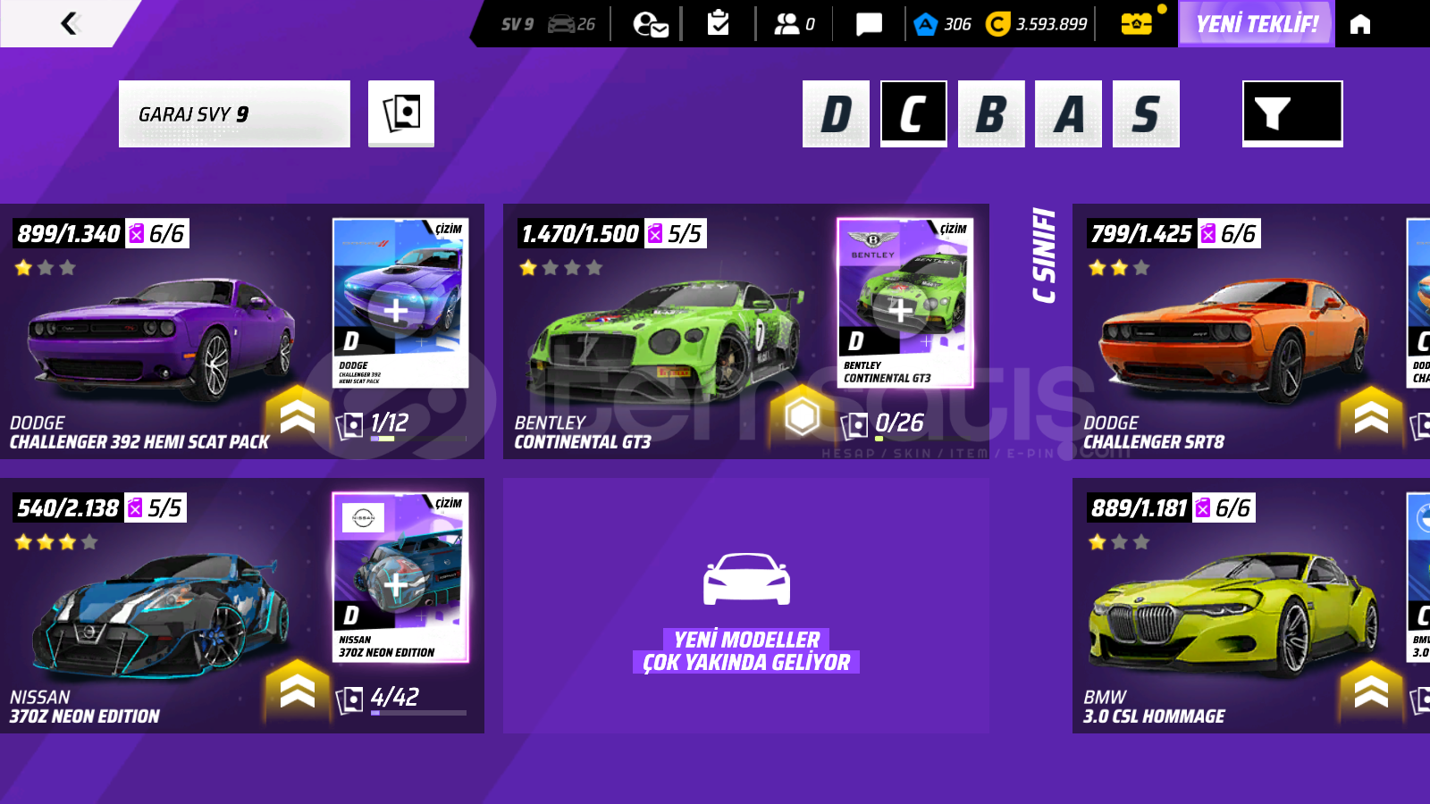 9sv garaj 26araç 3m kredi 306jeton