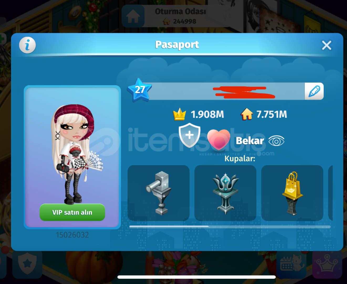 27 LEVEL. İÇİNDE 3.583 GOLD VAR. UYARISIZ BANSIZ. HARCADIĞIM ÜCRETE GÖRE FİYAT BELİRLİYORUM. 32 PERUK 9...