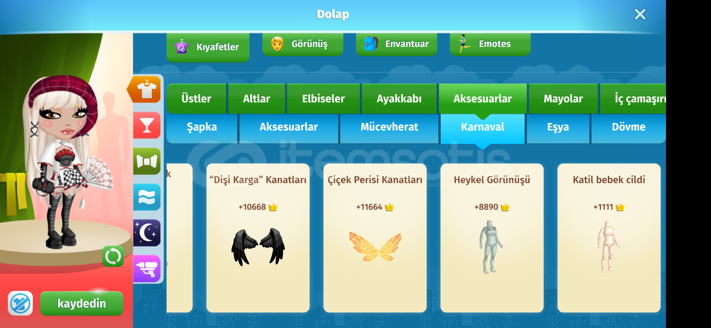 27 LEVEL. İÇİNDE 3.583 GOLD VAR. UYARISIZ BANSIZ. HARCADIĞIM ÜCRETE GÖRE FİYAT BELİRLİYORUM. 32 PERUK 9 KANAT ve bir çok kıyafet.