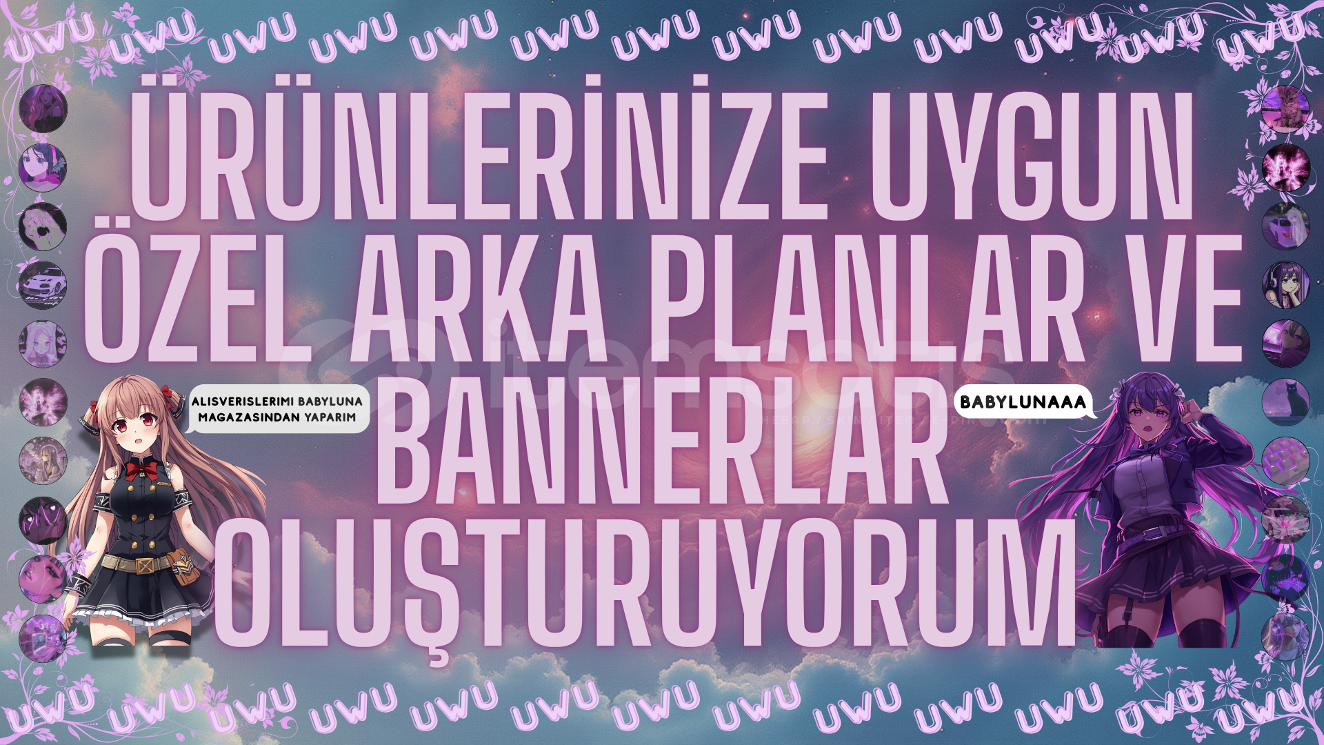 ✨️Arka Plan Görselleri ve Bannerlar İlanına Hoş Geldiniz✨️🔧Ürünlerinize Uygun Özel Arka Planlar ve Profilinize Uygun Bannerlar Oluşturuyorum.🔹 İsteğinizin Detay ve Zorluğuna Göre Fiyat Verilir.🔹 Beğenmezseniz Sipariş İade Edilir (Başta Kendi Tagımı Görsele Ekliyorum Kendini Zeki Sananlar Gelmesin)🔹 En Net Görüntüyü Sunmakta...