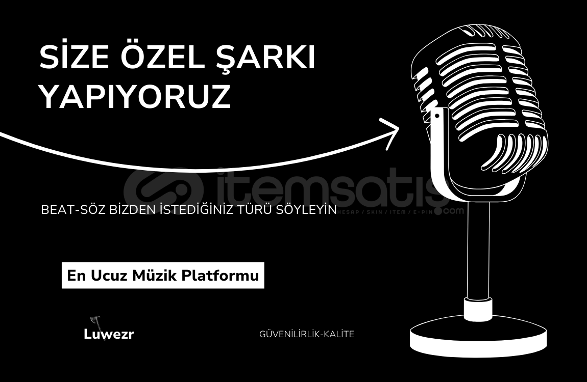 Ürün Açıklaması:Beat-Söz bize aittir.Şarkı piyasasında en ucuz şarkı platformuyuz.Sipariş verirken istediğiniz türü söylemeniz yeterlidir.Hazırki yazdığınız söze beat ekleyebiliriz.Yaptığımız şarkıyı herhangi bir platformda yayınlamayız müşteri isteğine bağlı yayınlar.Sipariş verdikten sonra 48 saat i&ccedi...