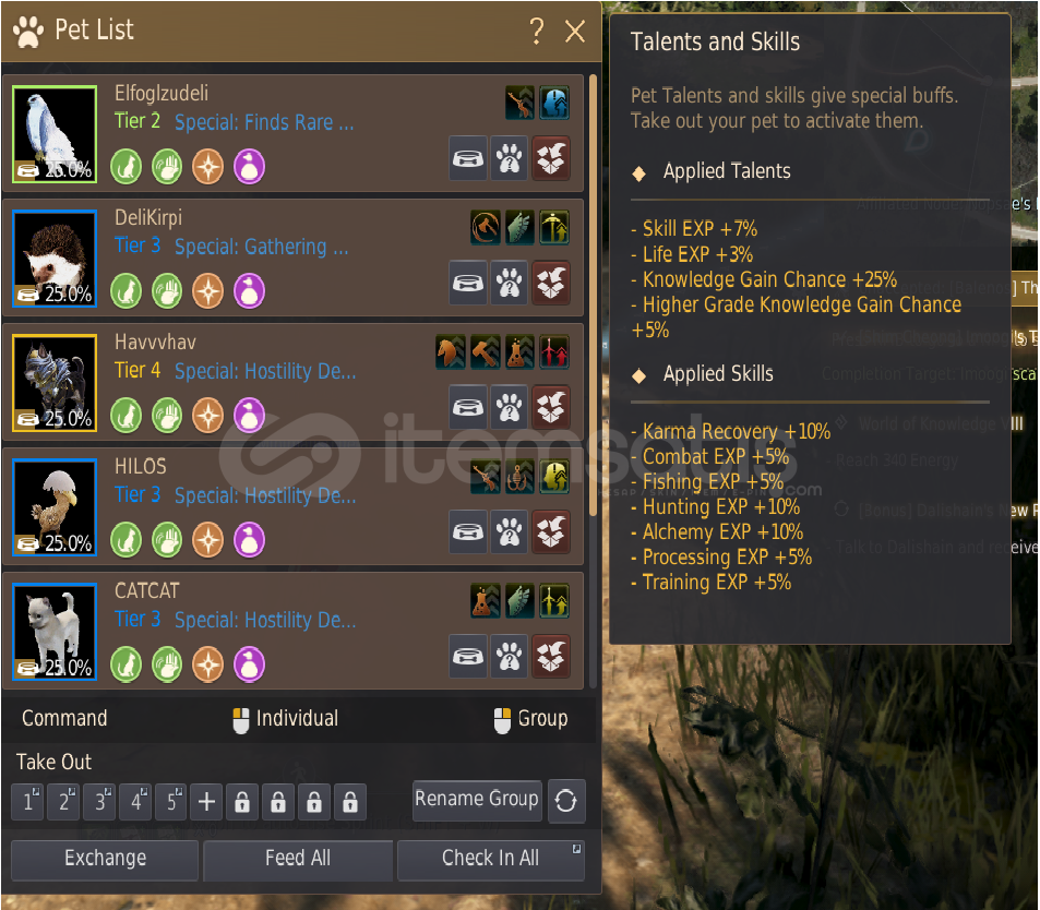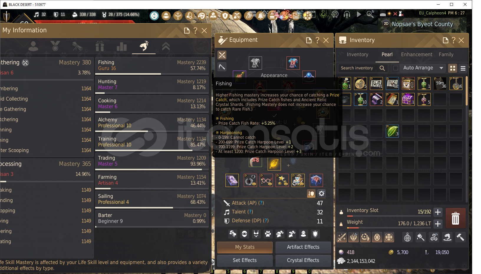 • Life Skill: Balıkçılık Guru 16, Avcılık Master 7, Aşçılık Master 6