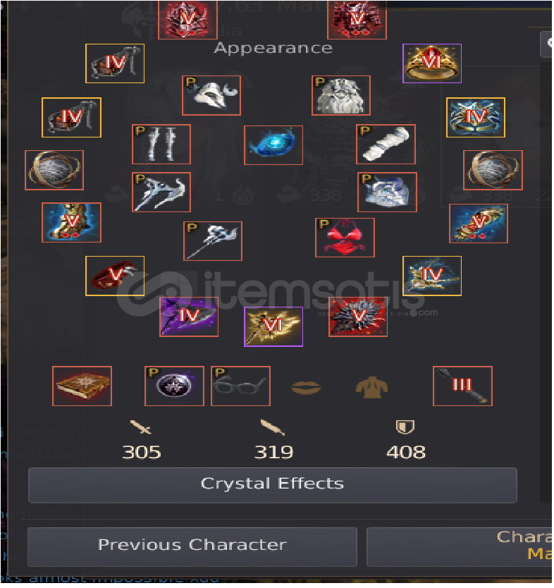 • Eserler: 2x Kabua's Artifact (BiS) + Full Kristal Seti