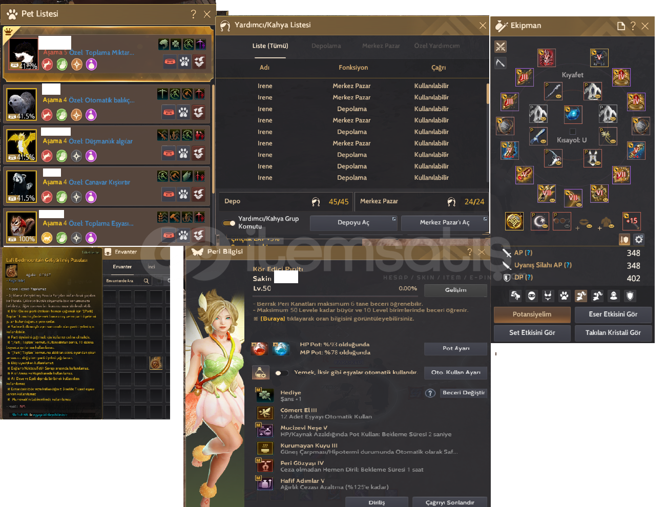 Hesap detayları fotoğrafta mevcut.Binek olarak Dine ve Ardunatt ..Silah değişim kuponu yoktur. Main karakteri Sorc Seraph bağlı karakterler 2200 ağırlık.45 Depo 24 M.Pazar yardımcı.Fiyat sabit pazarlık yok