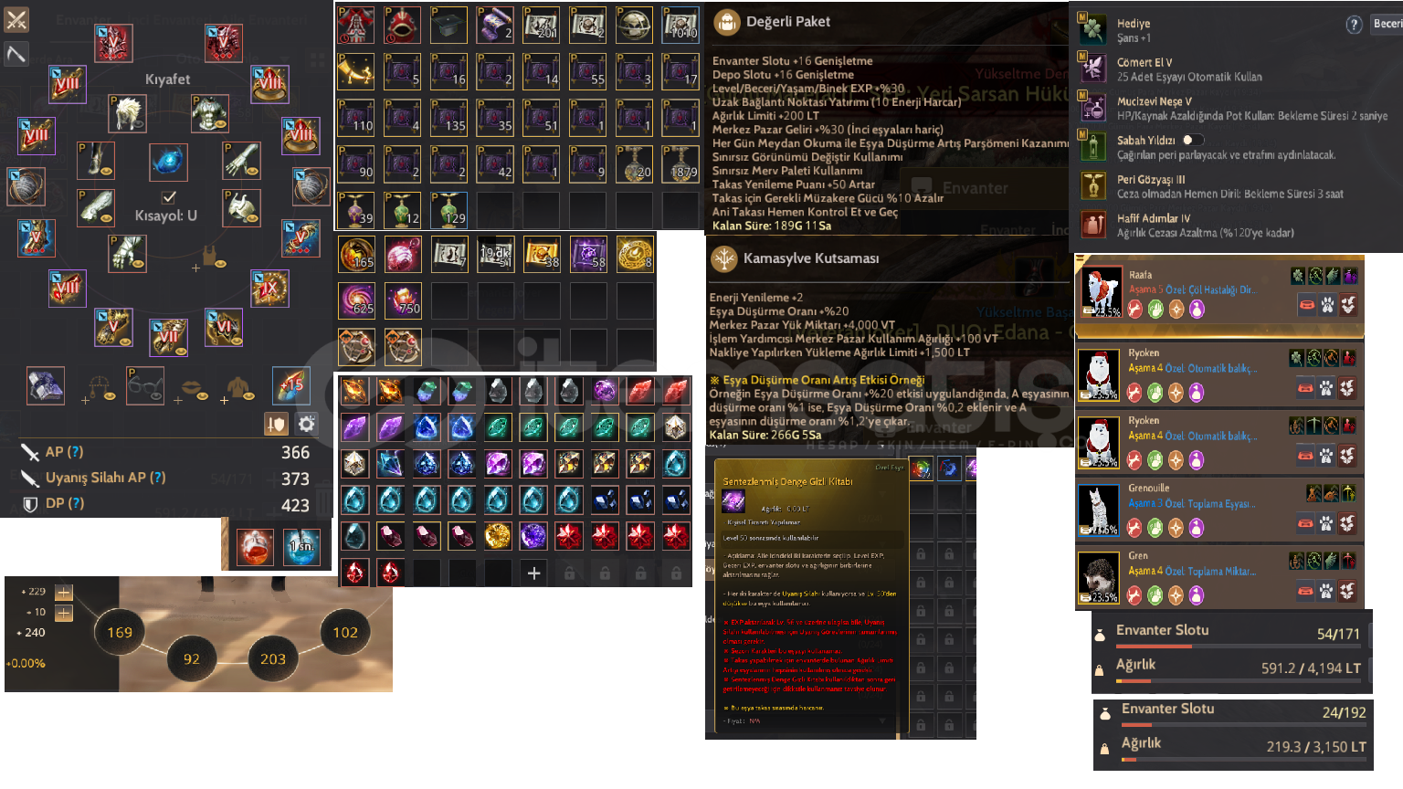 5X 250 FS / 16X 200FS /14X 170FS / 55X 150FS gibi yüzlerce fs var2 adet karaktare ait envanter ve ağırlık bilgisi görselde vardır. Striker ve novaDepoda sentez belgesi vardır. İstediğiniz karakteri açıp ağırlık ve envanter slotunuzu aktarabilirsiniz. Karakter içerisinde scler vs herşey görsellerde vardır. Alıcısına hayırlı olsun