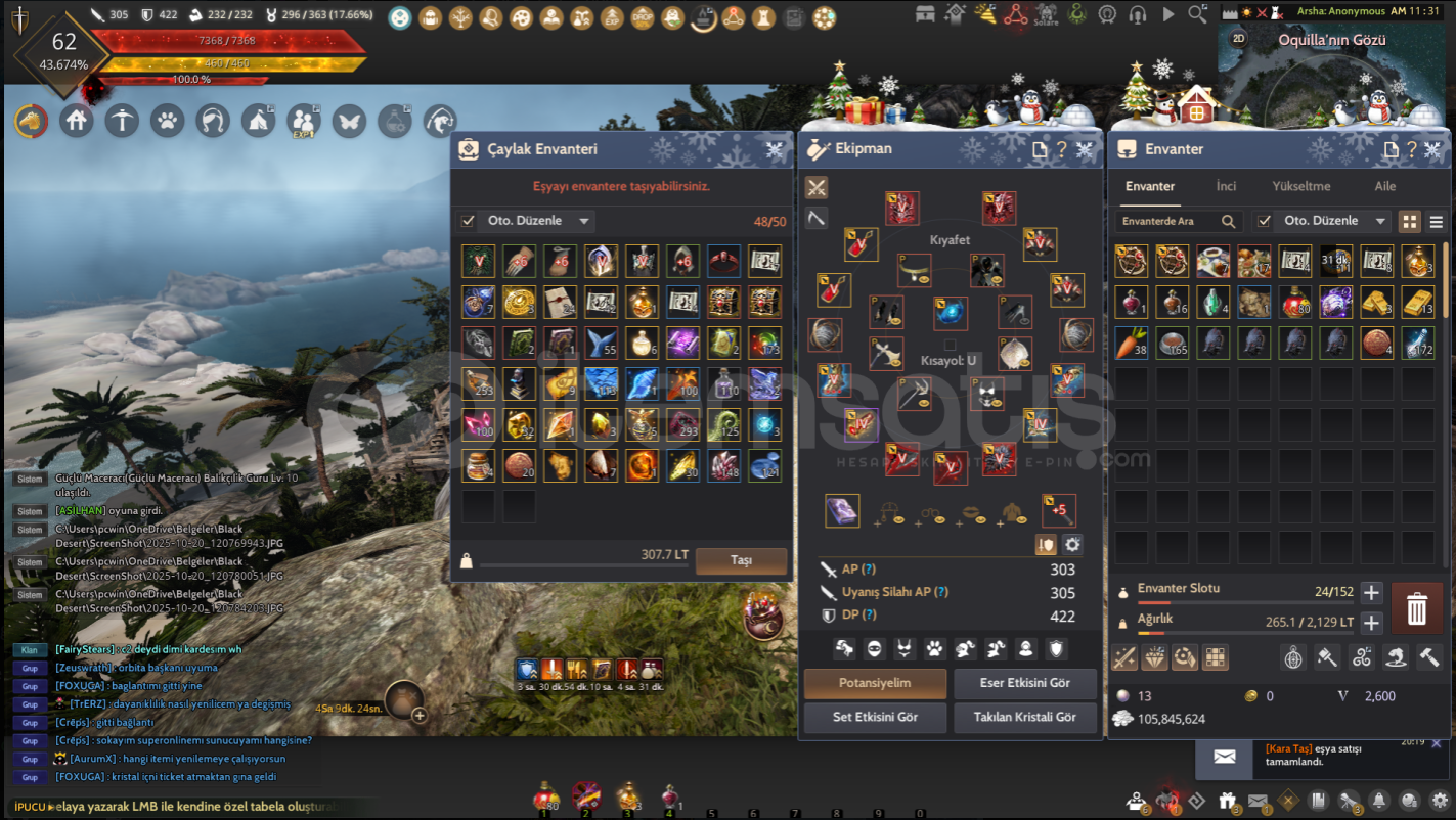 Hesaba 4 bin liradan fazla para yatırıldı ağırlık envanteri bol yanında 4 tane 60 61 lvl hesap var bir tanesi life hesabı balıkçılık yapıyor onun dışında çoğu yeri dönüyor merkez pazarda 20 b para var dolu fs vardır alt silahı dönüştürdüğünüz zaman zaten 325 ap olucak 10 b lik kristal seti var alana hayırlı olsun