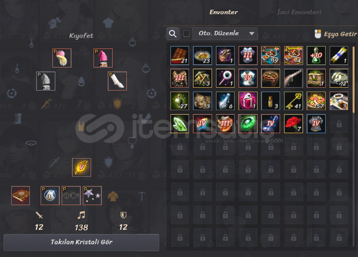 65 ,64 ,64,62, Dolu dolu kasılmıs karakterler vardırLife yapılmıs cogu sey Guru üstüne cıkmıs resimlerde mevcutFarm da yada pvp de rahat edeceğiniz bi çarPeri fullAtlarT10 Pega T10 Dine T9 Çift Doom Oda T10 a basılacak 28 kere denendi son iki Denemesi kaldı T10 aHesapta Bol bol sc drop ve para mevcutDepolar doluMerkez pazar doluFazlaca kostüm ve inci itemleri var hesapta3 Silahta garmoth basılıAyrıca 1 ...