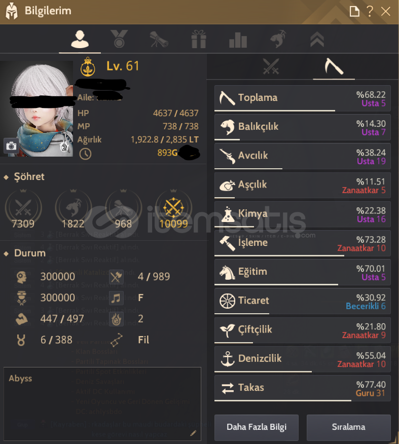 +350 fs dolupvp kristalleri ve bolca iksir mevcutana silah 125 agris alt silah 10 agriskarak cesaret ve kostümler mevcuttüccar 1 parca diğer tüm hazine eşyaları mevcutsorularınız içi dm atabilirsinizdc yayında acabilirim